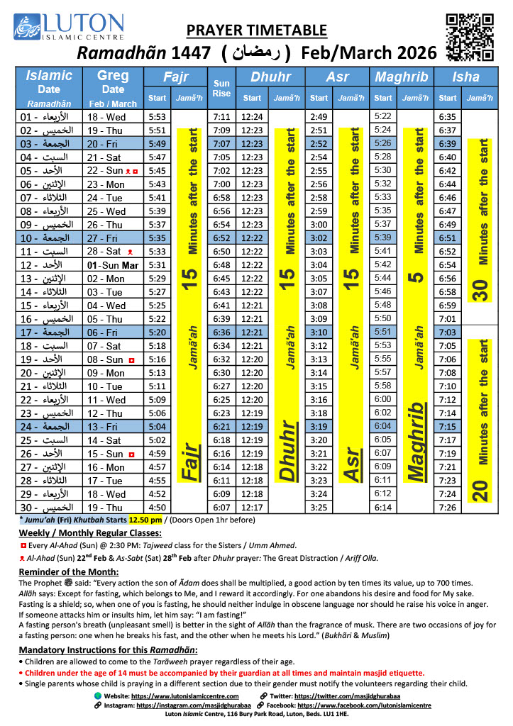 Luton Islamic Centre offers two weekly lectures dedicated to Hadith and Seerah. These sessions delve into the profound teachings of Prophet Muhammad (peace be upon him) and the rich history of Islam. Luton Islamic Centre also hosts regular seminars featuring esteemed visiting scholars and well-known du’aat (Islamic speakers), who share their expertise and insights on various aspects of Islamic knowledge.